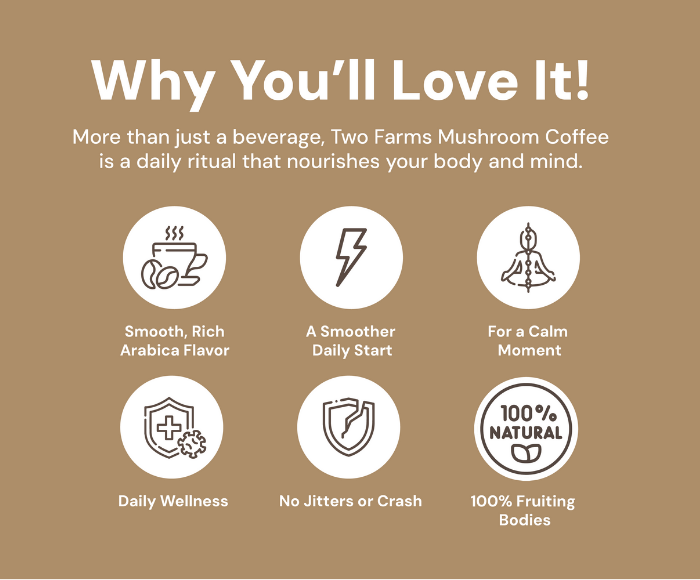 Tried another big mushroom coffee brand before and the flavor was off, Two Farms tastes like normal arabica and the BOGO value is way better.